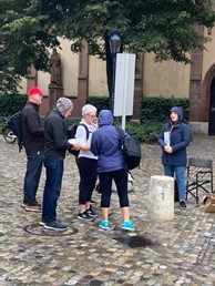 After meeting with suppliers, we are heading out on a walking tour organized by Swiss Tourism, with a very knowledgeable and lovely guide, Jacqueline. The city is quite walkable and charming. One unique benefit of visiting Basel is that it is so close to Germany and France that one can visit three countries in one day! It is possible to enjoy breakfast in Basel, lunch in France and dinner in Germany, before returning to Basel for a good night sleep!
